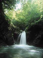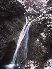 | 無名滝 (落差・約10m) | 長滝 (落差・約20m) | 百尋の滝 (落差・約40m) | 百尋の滝(氷結) |