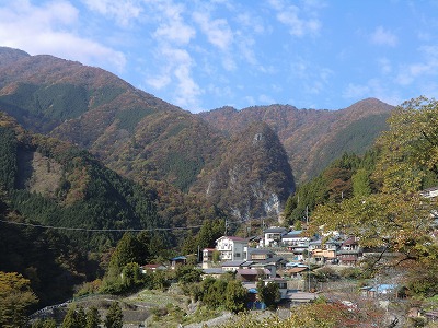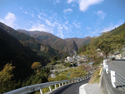 東日原バス停から対岸に向けて撮影(左奥が本仁田山) 2011/11/05