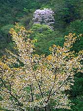 4月中旬、集落周辺の桜が咲き出し、5月上旬にかけ徐々に本谷、小川谷林道へと咲きあがっていきます。
