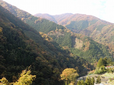 東日原バス停から対岸に向けて撮影(左奥が本仁田山) 2011/11/05